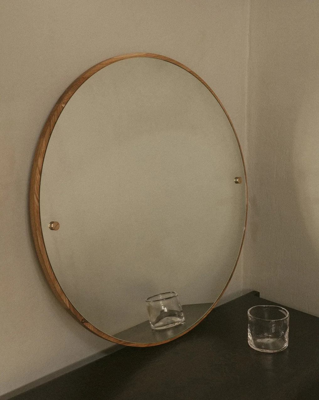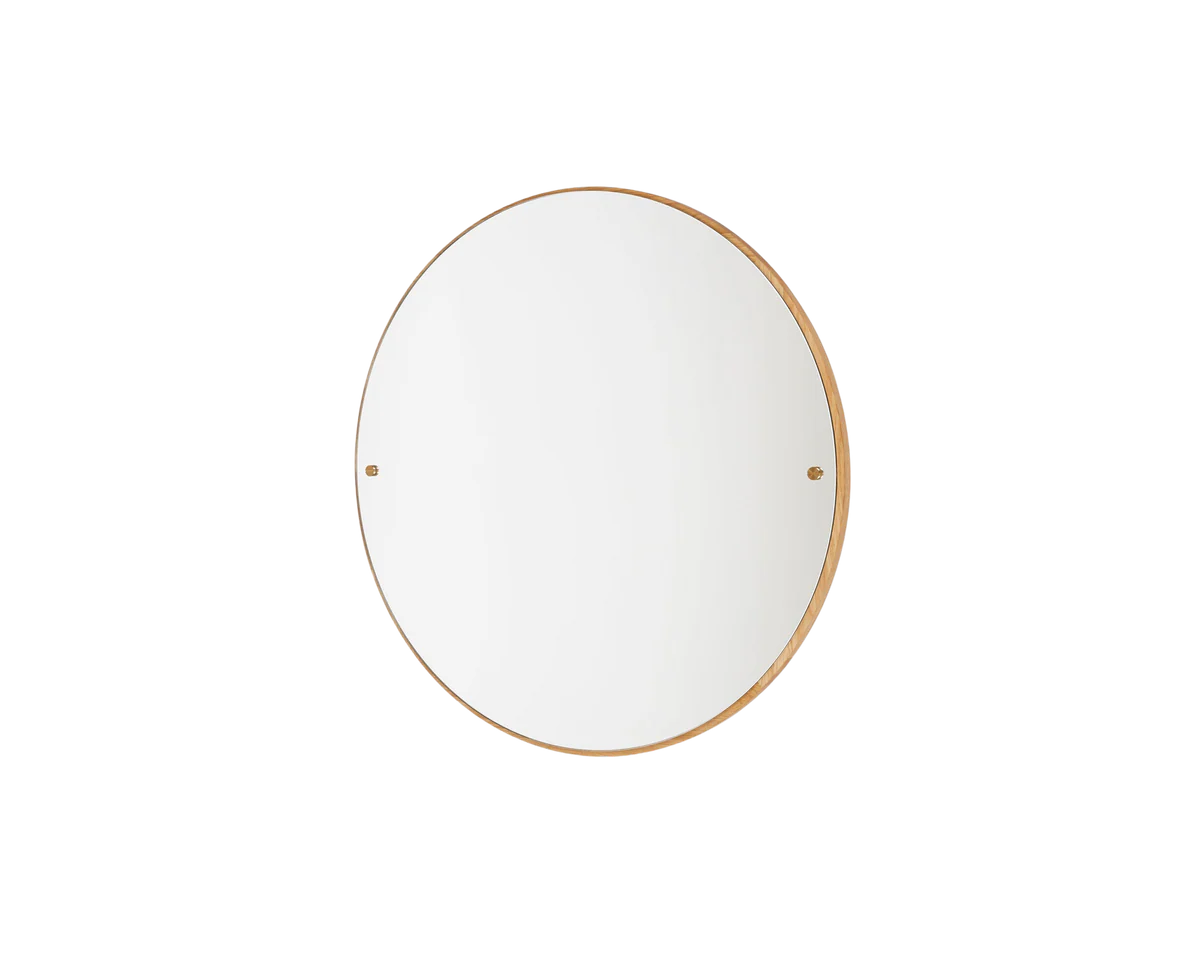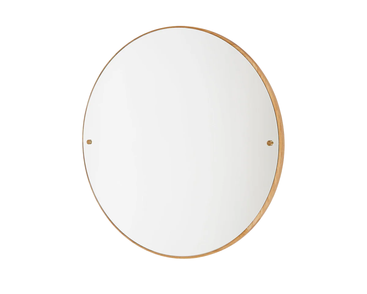 The Frama Circular Mirror, made from high-quality materials, including solid oak and brass fittings, is a highly-versatile and classic mirror that can be placed in various environments. The easy-to-mount item features a solid oak back, premium mirrored surface, and exposed brass screws—a timeless construction celebrating simplicity.