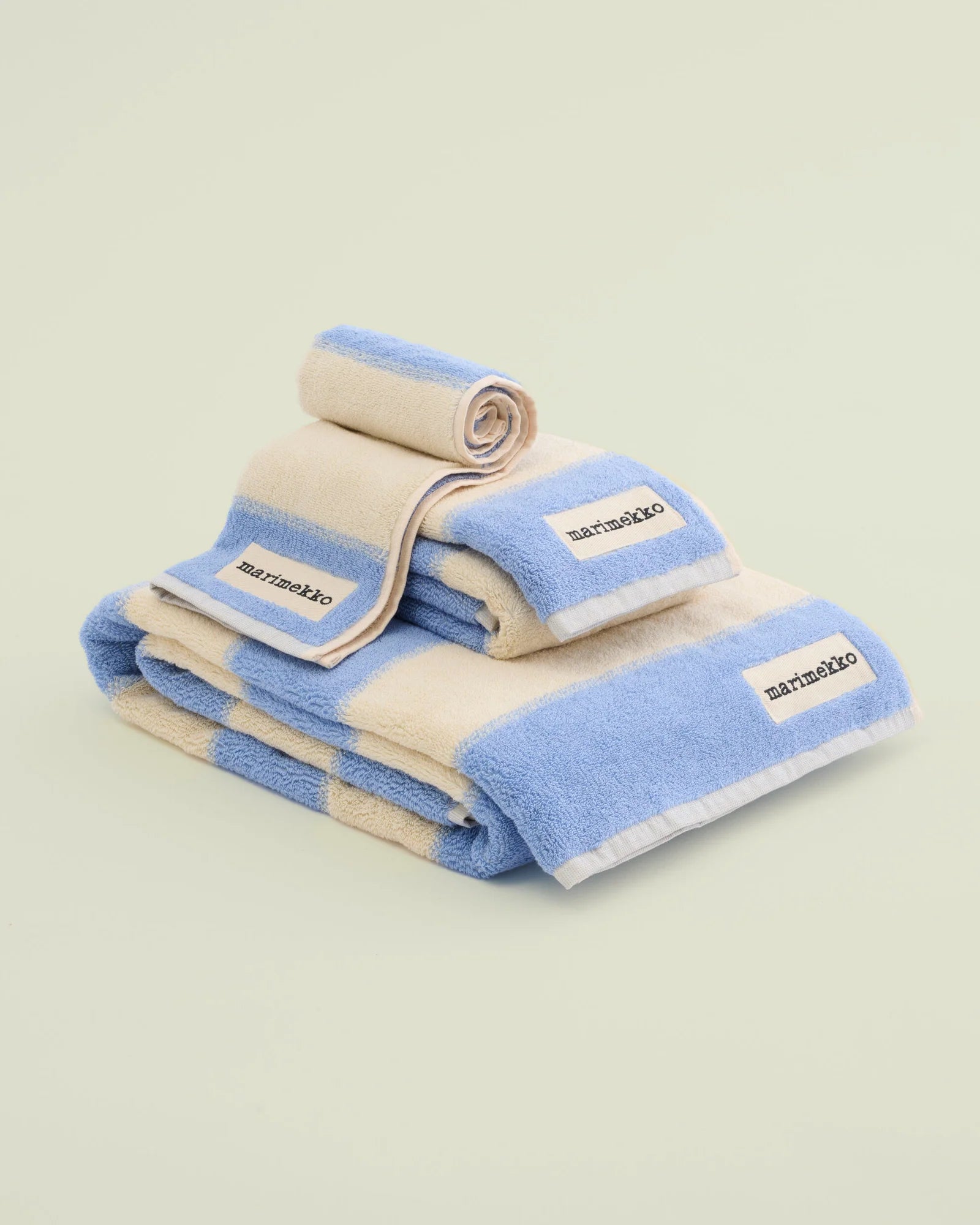 This hand towel features the Galleria pattern and the Marimekko label on the bottom edge.